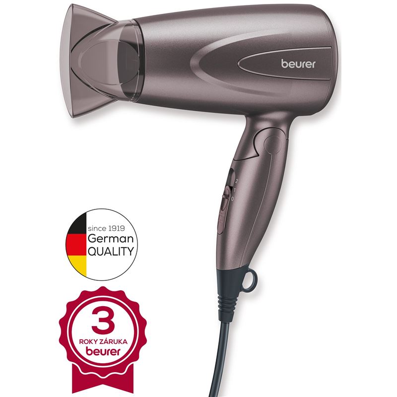 Kompaktný sušič vlasov BEURER HC17 sa vyznačuje priestorovo úsporným dizajnom so sklopnou rukoväťou a vysokým výkonom 1300 W. To znamená, že môžete rýchlo sušiť nielen doma, ale aj na cestách. Automatická ochrana proti prehriatiu zaisťuje bezpečnosť používania. Skopte prípadne zaveste na závesné očko a váš nenápadný spoločník sa zmestí všade!Charakteristika a technické údaje: 2 stupne ohrevu a fúkania Ergonomická skladacia rukoväť – kompaktná a praktická Úzka profesionálna dýza Automatická ochrana proti prehriatiu Uško na zavesenie – pre jednoduché skladovanie Výkon: 1300 W Napájanie: 220–240 V, 50-60 Hz Hmotnosť produktu: 359 g Rozmery produktu: 14,0 x 7,2 x 22,2 cm Trieda ochrany: II CE: áno Záruka: 3 rokySušiče vlasov od nemeckej spoločnosti Beurer zaručujú rýchle sušenie a poskytujú vašim vlasom tú najlepšiu možnú starostlivosť, ako aj bezpečnosť vďaka ochrane proti prehriatiu. Pretože cítiť sa dobre znamená cítiť sa krásne.