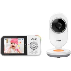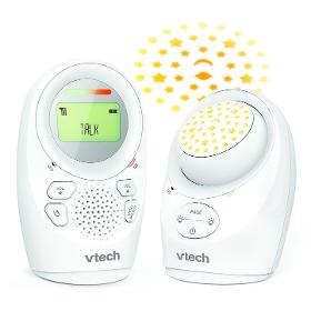 Detská audio-video opatrovateľka – s prenosom obrazu (video), dosah 30 m, prenos zvuku prebieha digitálne, s displejom, senzor teploty, regulácia hlasitosti, indikácia slabej batérie a uspávací režim (uspávanky, rozprávky alebo projekcia), detská jednotka sa nabíja zo siete a rodičovskú jednotku nabíja sieť alebo batéria (1× Li-ion dobíjacia – v balení)