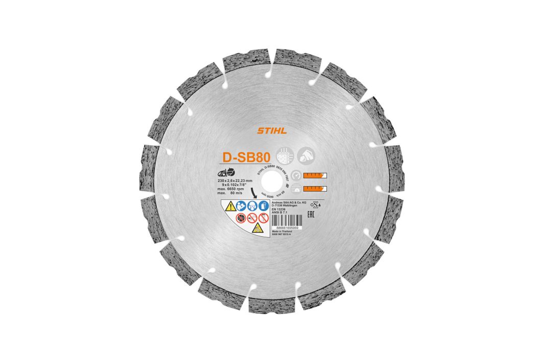 Veľmi rýchly diamantový rezný kotúč D-SB80 je vhodný ako univerzálny rezný kotúč na rôzne materiály: betón, starý betón, železobetón, silne železobetón, tehly a tvrdý prírodný kameň .