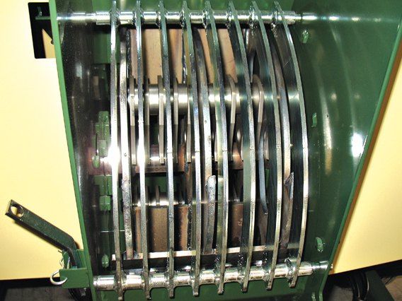 drviaceho výkonu stroja a k zabráneniu jeho zbytočného preťažovaniu. Násypka a vstupný otvor k drviacemu ústrojenstvu sú väčších rozmerov, než je doporučovaný