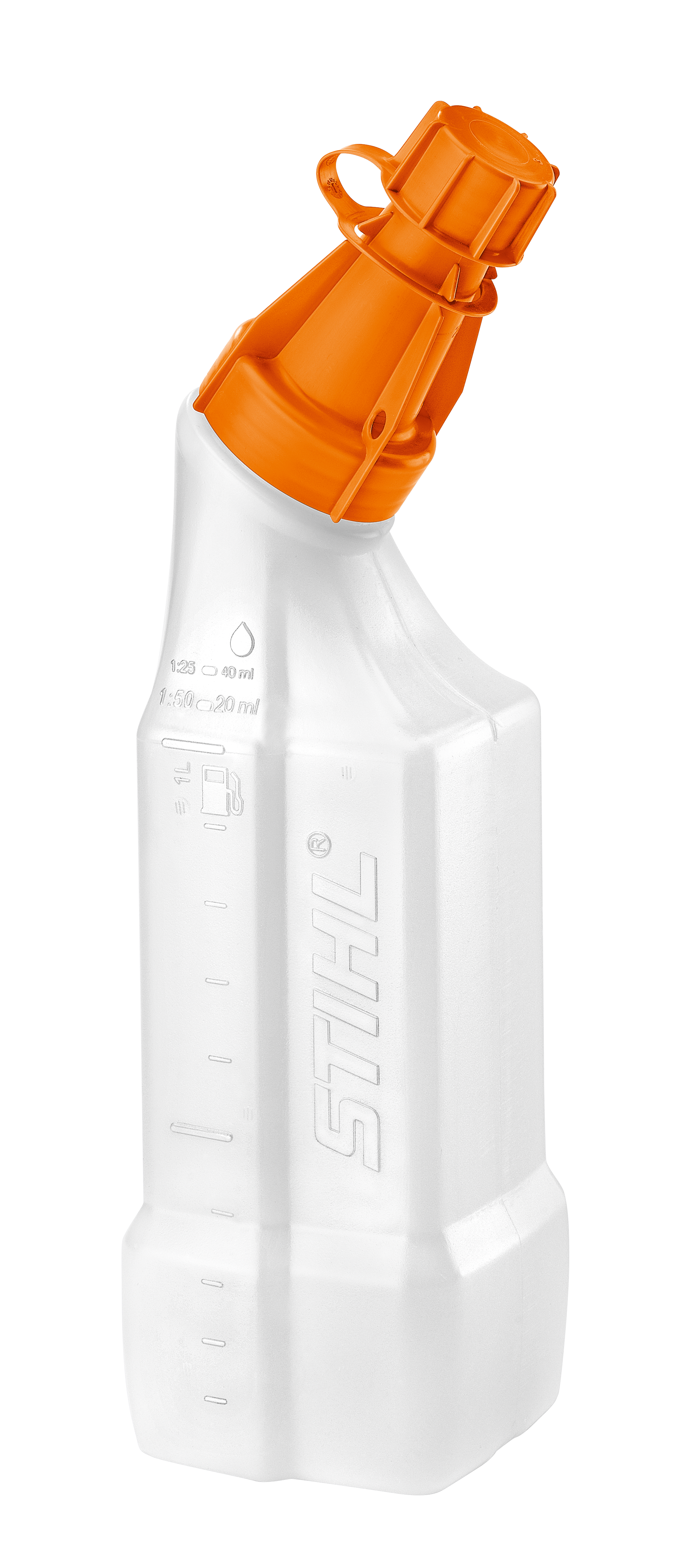Pre ľahké miešanie a plnenie menších dávok paliva do 1 l. Úzka vylievacia hubica, veľký plniací otvor, stupnica na fľaši a vo viečku, uzatvárateľná.