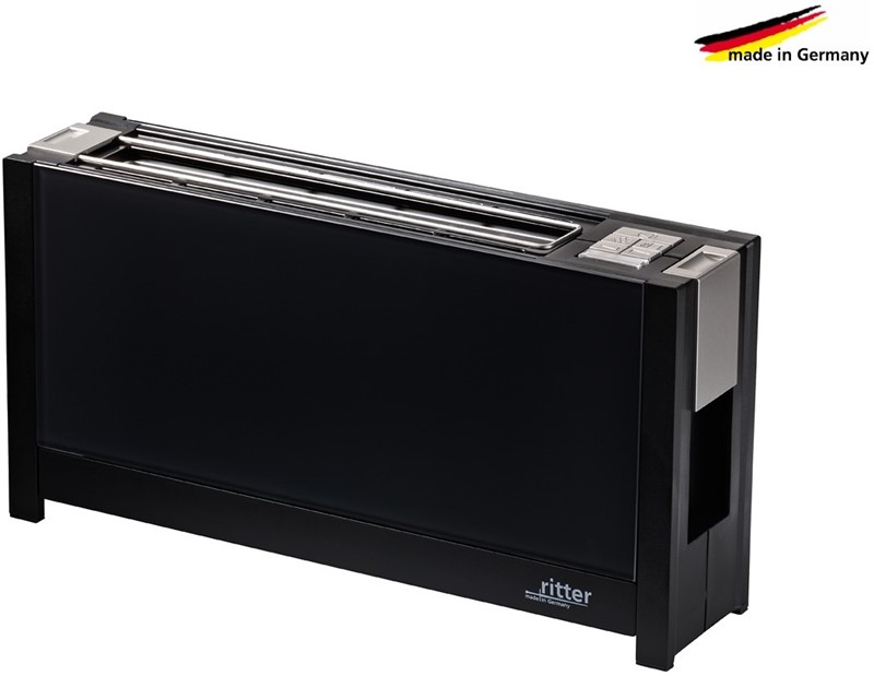 Hriankovač Volcano 5 – neuveriteľne štíhly hriankovač z dielne nemeckej spoločnosti Ritter – Made in Germany.Vďaka extrémne nízkej hĺbke 9 cm je elegantný toaster volcano5 od ritterwerk nesmierne štíhly. Je k dispozícii v troch farbách s elegantnými sklenenými panelmi v čiernej, bielej a červenej farbe. Vulkán5 získal pečať Blue Angel “chráni životné prostredie – pretože je energeticky úsporný”. Hriankovač presvedčil svojou nízkou spotrebou energie, vysokými bezpečnostnými normami a mimoriadnou jednoduchosťou použitia. Predĺžené otvory na hrianky u Volcano 5 pojmu až 2 hrianky naraz a má funkciu automatického otvárania, rozmrazovania a opätovného zahriatia jedla, integrovaný stojan na chlieb a bagety a misku na drobky. Stupeň opracovania je indikovaný digitálne pomocou LED. Tepelne izolované puzdro, automatické vypnutie pri uviaznutí toastu a samostatné tlačidlo zastavenia na prerušenie opekania zaručujú bezpečnosť. Krásny dizajn tvorený sklenenými stenami bol nominovaný na nemecké ocenenie Design Award 2012. Toto je najvyššia oficiálna cena v Nemecku. Vďaka svojmu vynikajúcemu dizajnu a vysokej kvalite výrobkov si Volcano získala cenu za dizajn iF za rok 2011. Tento jedinečný hriankovač je klenotom každej kuchyne! …samozrejme “Made in Germany”!Charakteristika a technické údaje: na celé 2 krajce chleba 3 farby funkcia STOP-automatické vypnutie LED indikácia dopečenia funkcia rozmrazovania, ohrievania nastaviteľný stupeň opekania zásuvka na omrvinky 950W