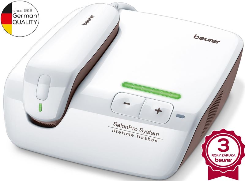 Odstraňovač chĺpkov Beurer IPL 10000+ SalonPro System od nemeckej spoločnosti Beurer funguje na báze intenzívneho svetla a slúži na epiláciu ochlpenia s dlhodobým účinkom pre osobné použitie. Pre dosiahnutie kompletného epilačného účinku je potrebné absolvovať epilačnú kúru počas celého jedného obdobia cyklu rastu ochlpenia, ktorý sa u jednotlivých osôb líši a závisí na mieste ochlpenie na tele, spravidla však činí 18-24 mesiacov.Beurer IPL 10000 je nabitý funkciami. Používa profesionálnu technológiu z kozmetického salónu, je dermatologicky testovaný na toleranciu kože. Vďaka najmodernejšej svetelnej technologií je mimoriadne bezpečný. Životnosť je až 250 000 svetelných zábleskov! IPL 10000 ponúka NAJRÝCHLEJŠIU aplikáciu (pri maximálnej úrovni energie pre oblasť rúk, nôh, tváre, podpazužia a bikín) prostredníctvom XXL – veľkej svetelnej plochy na záblesk a to až na 7 cm2. Vďaka tomu je priemerná dlžka jednej liečby celého tela okolo 26 minút!Navyše ponúka IPL 10000 ešte 1 nadstavec pre presnú aplikáciu! Epilácia založená na pôsobenie svetla nie je vhodná pre prirodzene tmavšie odtiene pokožky alebo pre opálenú pokožku. Prístroj na epiláciu je vybavený bezpečnostnými prvkami: má integrovaný automatický senzor odtieňu a tónu farby pokožky, pomocou ktorého možno zmerať farbu ošetrovanej časti pokožky, čo umožňuje použitie len na vhodných odtieňoch pokožky. Pre ochranu zraku sa záblesk svetla spustí až vtedy, ak bude dotykový snímač pevne priliehať ku koži. Je to ochrana, ktorá blokuje škodlivé UV žiarenie.Epilátor je určený pre väčšie plochy kože ako sú nohy, paže, podpazušie, bikini, chrbát, brada a určité časti tváre.Vďaka voľne stiahnuteľnej aplikácii Beurer MyIPL je teraz epilovanie ešte jednoduchšie. Táto intuitíávna aplikácia Vás podporuje počas celej liečebnej fázy, pomáha Vám nastaviť vhodnú úroveň energie tak, aby vyhovovala Vašej kože, môžete si vytvoriť osobný plán epilovania vrátane funkcie pripomienky. Charakteristika a technické údaje:technológia pre dlhodobé odstraňovanie chĺpkov používaných v profesionálnych kozmetických inštitútochdlhodobé výsledky počas niekoľkých mesiacovprofesionálne zariadenie pre trvalé odstránenie ochlpeniaživotnosť 250 000 svetelných impulzovrýchly, bezpečný a spoľahlivýXXL – najväčšia svetelná plocha 7 cm 2state-of-the-art svetelná technika s bezkonkurenčnou bezpečnosťoustate-of-the-art svetelná technológia používané dermatológmi pre profesionálne depiláciuIPL (intenzívne pulzné svetlo) deaktivuje vlasový folikul hlboko pod kožou, aby sa zabránilo rastu ochlpeniaklinicky overená technológiabezkonkurenčná bezpečnosť so snímačom typu pleti, ktorý automaticky detekuje všetky vhodné typy pletivstavaná UV ochranajednoduchá a bezpečná aplikácia pre použitie domana tvár, ruky, nohy, podpazušie a slabínyveľmi rýchla aplikácia: len 26 min. ca. na celé teloaž 50% redukcia chĺpkov už po 3-4 ošetrenínie je vhodné pre tmavé farby pleti a veľmi svetlé vlasyfunkcia “blesk-glide” pre pohodlné používanieintegrovaný UV filter na ochranu pokožky