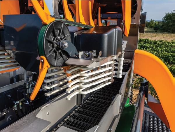 Samochodný zberač hrozna Optimum 2 Pellenc predstavuje efektívny, kvalitný a šetrný zber hrozna. Zloženie zberača pozostáva z multifunkčného nosiča s hydraulickým pripojením a s automatickým rozpoznávaním všetkých Pellenc nástrojov.