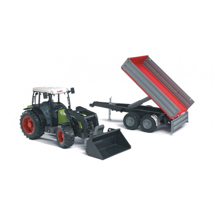 Maketa traktora Nectis 267 F z edície Bruder Claas s funkčným čelným nakladačom a sklápacou vlečkou ponúka výbornú zábavu pre všetkých milovníkov traktorov. Model je vybavený predným a zadným závesným zariadením,
