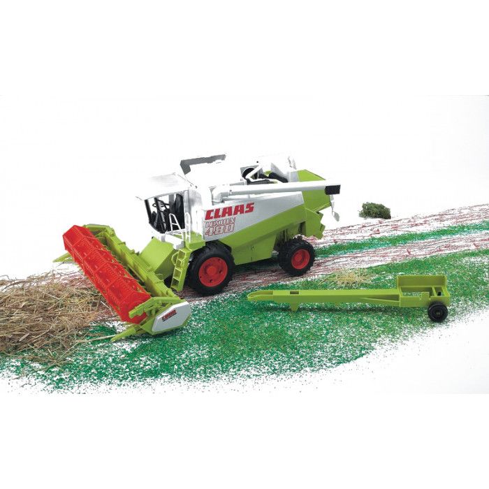 ktorým si budete môcť užívať prácu kombajnistu. Žacia lišta je pohyblivá a odnímateľná, prevážať ju je možné na vozíku, ktorý je súčasťou balenia. Ďalším zaujímavým prvkom je otvárací kryt zásobníku na obilí a výklopné rameno.