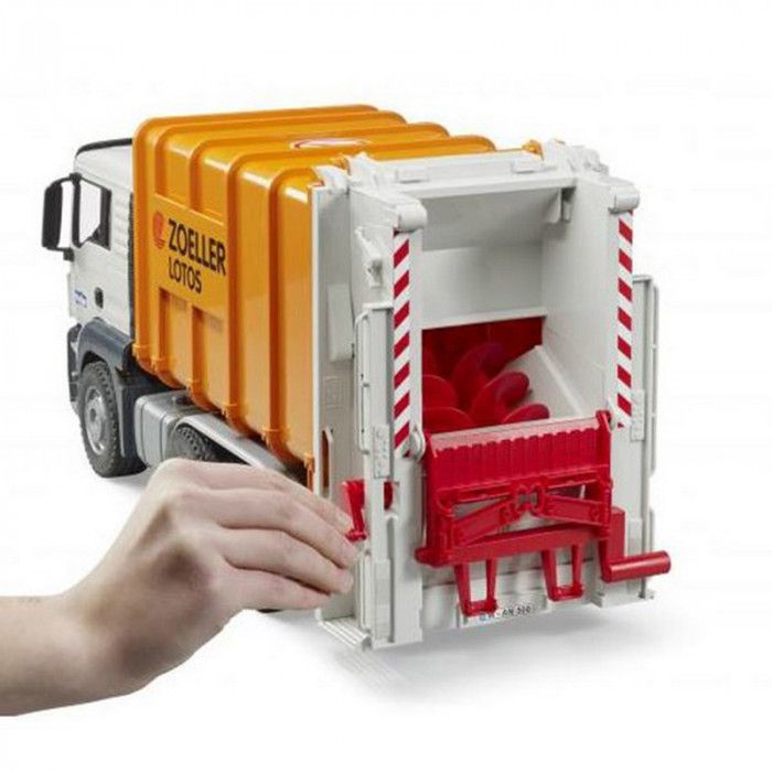 dokáže vyklápať jak popolnice tak aj kontajnery. Celú korbu je potom možné vyklopiť a vysypať odpadky. Sada obsahuje 2 popolnice. K modelu sa výborne hodí aj sada popolníc.