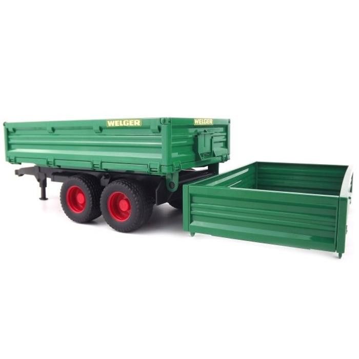 Vlastnosti: odnímateľná horná nadstavba, bočnice otvárateľné do všetkých strán a sklápací príves. Príves je kompatibilný so všetkými traktormi Bruder, vyrobený v mierke 1:16. Vhodný pre deti od 3 rokov.