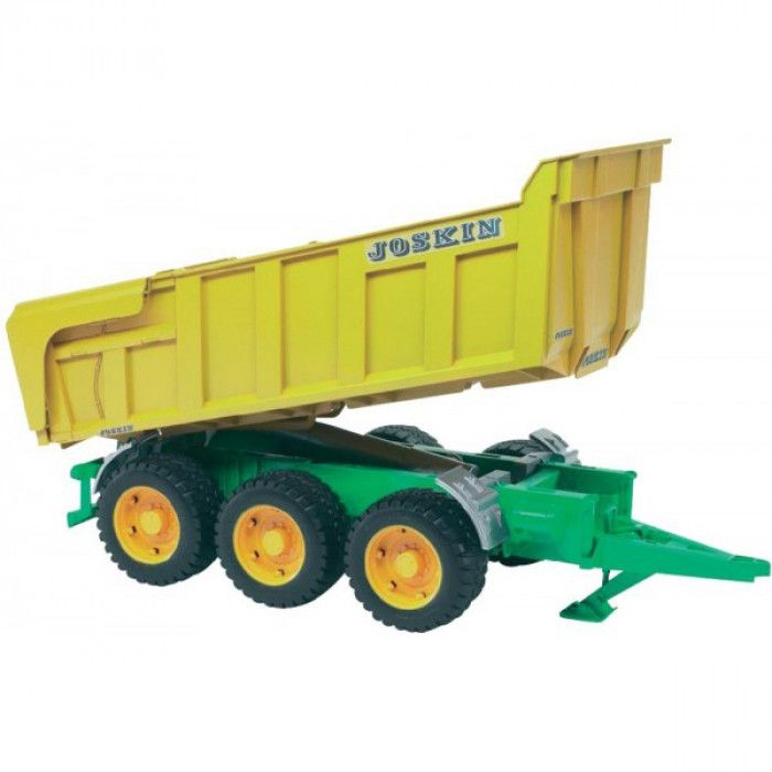 Priestranný sklápací príves Joskin je výborným doplnkom k modelom značky Bruder. Kompatibilný je so všetkými traktormi z Profi série, disponuje sklápacou opornou nohou a polohovateľnou korbou s otváracím zadným čelom