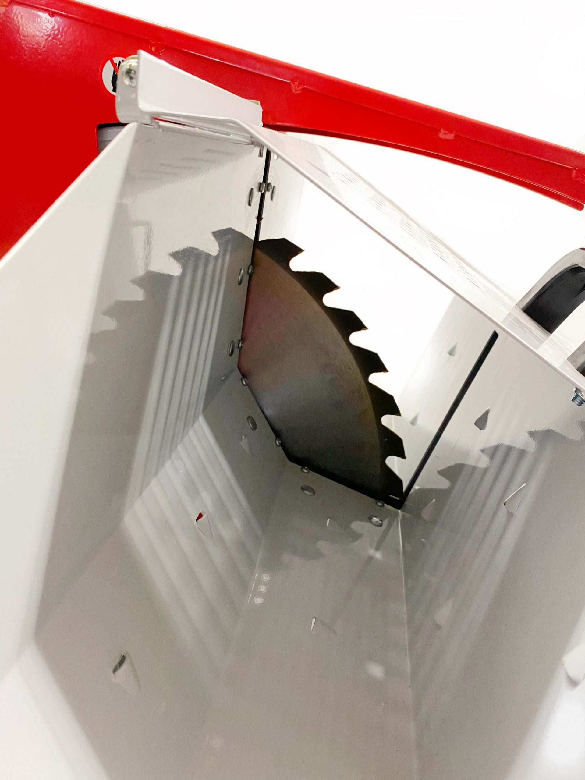 a pohyblivý kryt, ktorý zakrýva pílový kotúč počas celej doby rezu.