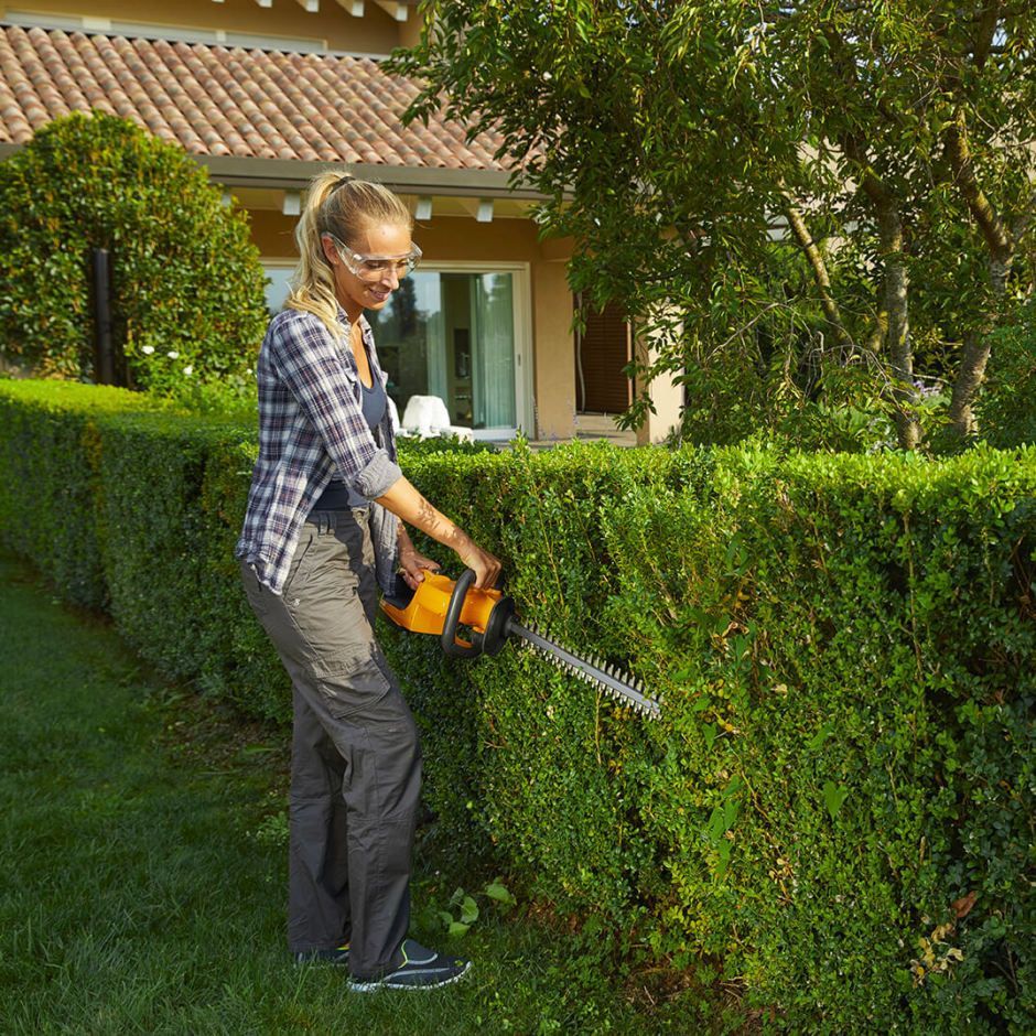 Akumulátorový plotostrih s výkonom 0,15 kW a batériou 2 Ah. Celková dĺžka lišty je 55 cm a pracovný záber noža 50 cm.