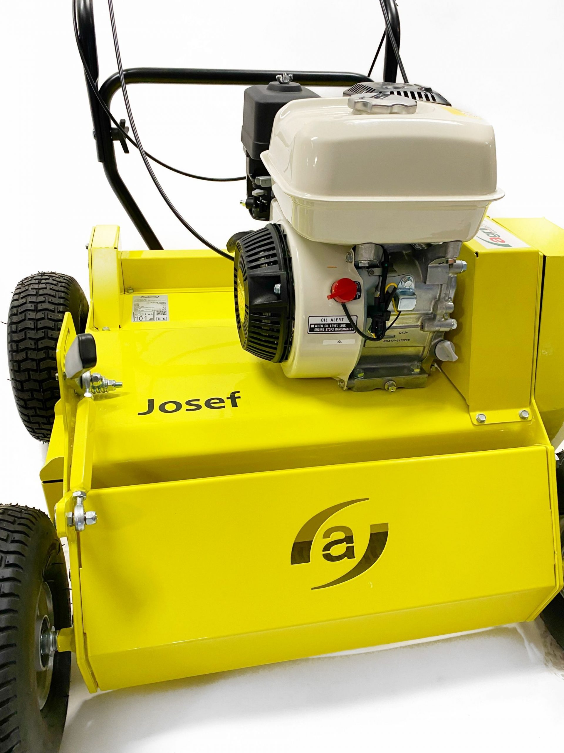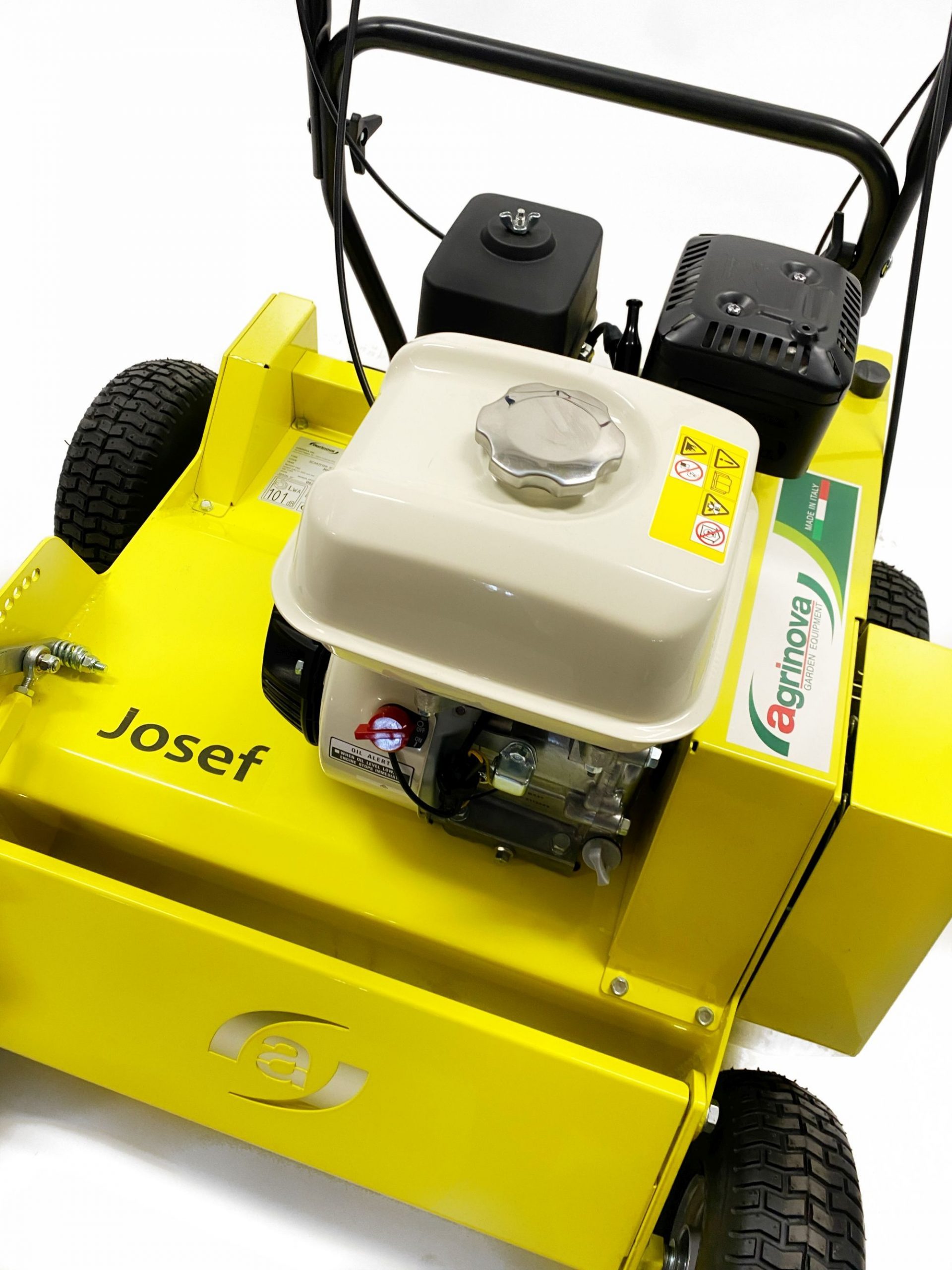 a zároveň tým nastavíte aj pracovnú hĺbku od 0 do 40mm. Kolesá sú osadené v guličkových ložiskách a celý skelet Agrinova Josef AR60S je vyrobený z kvalitnej ocele. Hmotnosť stroja je 90 kg