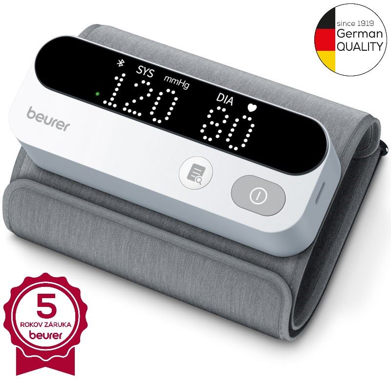 S ramenným tlakomerom BEURER BM59 s nabíjateľnou batériou sú otravné hadičky a káble minulosťou. Manžeta je pripevnená priamo k prístroju a umožňuje rýchle a jednoduché meranie. Namerané hodnoty je možné jednoducho cez Bluetooth preniesť do bezplatnej aplikácie „beurer HealthManager Pro“ a dlhodobo sledovať vývoj vášho krvného tlaku.Charakteristika a technické údaje: Žiadne hadice, žiadne káble – merajte jednoducho a presne Sledujte vývoj hodnôt krvného tlaku kedykoľvek pomocou aplikácie „beurer HealthManager Pro“ Plne automatické meranie krvného tlaku a pulzu na ramene Automatická predvoľba tlaku a vypúšťanie vzduchu Detekcia arytmie: varuje pred možnými srdcovými arytmiami Prehľadný, ľahko čitateľný displej LED indikátor rizika: s farebnou LED stupnicou na klasifikáciu výsledkov merania Vrátane manžety pre obvod ramena 22 – 42 cm Vrátane preukazu krvného tlaku na zdokumentovanie nameraných hodnôt Plné využitie iba s aplikáciou „beurer HealthManager Pro“ 1 užívateľská pamäť pre 240 nameraných hodnôt Automatické vypnutie Dátum a čas Upozornenie na chyby aplikácie Prenos nameraných hodnôt cez Bluetooth USB-C nabíjací kábel v balení Nabíjanie: 5 V 1 A Nabíjateľná Li-ion batéria 3,7 V Výdrž batérie: cca 60 meraní v závislosti od krvného tlaku, tlaku nafúknutia, počtu pripojení Bluetooth Hmotnosť produktu: 225 g (s batériou a manžetou) Rozmery produktu (D x Š x V): 125 x 48 x 28 mm CE: áno Zdravotnícka pomôcka Záruka: 5 rokovRamenné tlakomery nemeckej spoločnosti Beurer sú uznávané pre ich presnosť, jednoduchosť použitia a cenovú dostupnosť a poskytujú kvalitu za dostupnú cenu každému, kto potrebuje kvalitný monitor krvného tlaku pre domáce použitie. Tlakomery Beurer sú určené na meranie a monitorovanie arteriálneho krvného tlaku na ramene. Meranie je veľmi jednoduché, vhodné úplne pre každého, doma i na cestách. Tlakomery Beurer sú prispôsobené prísnym požiadavkám a špecifikáciám smernice MDD 93/42/EEC o zdravotníckych pomôckach a majú príslušnú značku CE.Sortiment ramenných tlakomerov Beurer je široký a pokrýva zariadenia od plne automatických jednoduchých modelov s jedným pamäťovým kanálom až po najkomplexnejšie moderné modely s duálnymi pamäťovými kanálmi a dotykovou obrazovkou. Zo širokého sortimentu si vyberie naozaj každý, presne podľa požiadaviek a okolností. Ramenné tlakomery Beurer môžu použiť ľudia všetkých vekových kategórií a môžu byť tiež veľmi užitočné pri starostlivosti o starších v domovoch dôchodcov.Ramenné tlakomery Beurer boli testované na presnosť a spoľahlivosť a boli označené značkou CE o zdravotníckych pomôckach podľa smernice MDD 93/42/EEC o zdravotníckych pomôckach. Sú tiež v súlade s európskymi normami pre neinvazívne prístroje na meranie krvného tlaku EN1060-1 a EN1060-3. Tlakomery Beurer sú uznávané za najvyššiu kvalitu a presnosť na globálnom trhu zdravotnej starostlivosti. To je poctivá nemecká značka Beurer – prináša spoľahlivosť, presnosť, pohodlie a jednoduchosť použitia za prijateľnú cenu.Beurer – Najpredávanejšia značka tlakomerov na nemeckom trhu a druhá najpredávanejšia značka tlakomerov na svete.