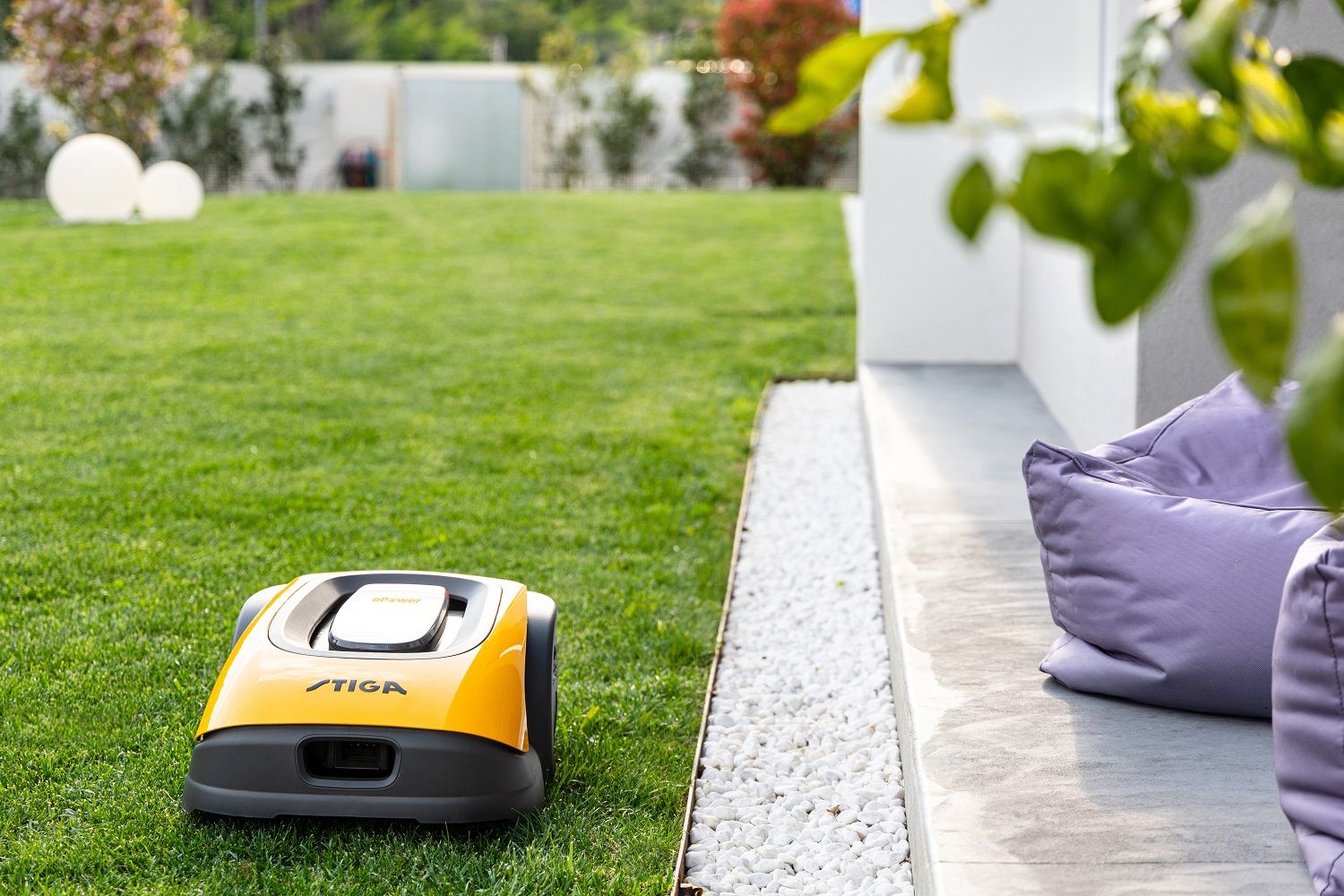 manévrovanie v úzkych priestoroch, medzi stromami a kríkmi v záhradách všetkých tvarov a veľkostí. Pokiaľ je stroj osadený kitom E1200 (5Ah), je ideálny pre záhrady do 1200 m2.