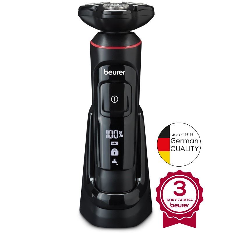 Rotačný holiaci strojček BEURER MN8X bude váš nový obľúbený stylingový pomocník. Flexibilná holiaca hlava a výkonná batéria vám obzvlášť uľahčia nájdenie vášho osobného štýlu. Vďaka presnému nástavcu s hrebeňovým nástavcom dosiahnete aj na ťažko dostupné miesta – pre dokonalý styling s rotačným holiacim strojčekom od Beurer, ktorý je naviac vodotesný a má funkciu rýchleho nabíjania.Charakteristika a technické údaje: 360° flexibilná holiaca hlava pre optimálne zarovnanie kontúr Vodotesný (IPX7) – možno použiť aj v sprche alebo vo vani Funkcia rýchleho nabíjania (10 minút prevádzky, 5 minút nabíjania) Jednoduchá výmena nástavcov vďaka magnetickej fixácii Vrátane presného nástavca pre ťažko dostupné miesta Výkonná lítiová batéria na 100 minút prevádzky, doba nabíjania 120 min Cestovný zámok zabraňujúci náhodnému zapnutiu zariadenia LED displej so stavom batérie v %, indikátorom nabíjania, cestovným zámkom a symbolom čistenia V balení: nabíjacia a odkladacia stanica, čistiaca kefka, USB-C kábel s adaptérom, ochranný kryt holiacej hlavy Napájanie: Vstup 100 – 240 V, 50/60 Hz, max. 0,5 A; Výstup: 5 V 2 A, 10 W Batéria: 1100 mAh; 3,7 V; Li-Ion Rozmery: cca 16 x 6 x 6 cm (rukoväť vrátane strihacej hlavice), cca 9 x 6 x 7 cm (nabíjacia stanica) Hmotnosť produktu: cca 175 g (rukoväť vrátane strihacej hlavice), 75g (nabíjacia stanica) CE: Áno Záruka: 3 rokyUšetrite si cestu k holičovi – so štýlovými produktmi starostlivosti o mužov nemeckej spoločnosti Beurer. V sérii HairRemoval nájdete všetky produkty, ktoré potrebujete pre upravený vzhľad od hlavy až po päty. Štýlová pánska starostlivosť Beurer ponúka všetky produkty pre dnešných mužov. Od zastrihávačov fúzov a holiacich strojčekov až po zastrihávače vlasov a tela – s takýmito produktmi sa môžete profesionálne upraviť aj doma.Séria MenCare je súčasťou novo vyvinutého jazyka vizuálneho dizajnu Beurer. V spolupráci s mníchovskou dizajnérskou agentúrou FLUID a dizajnérskym konzultantom Edmundom Englichom vytvoril Beurer nezameniteľný vzhľad produktu. V hlavných farbách série Beurer MenCare dominujú čierne a antracitové tóny, ktoré pôsobia veľmi mužným dojmom. Červená dizajnová línia Beurer, inšpirovaná veľkými športovými značkami, je nápadným, opakujúcim sa prvkom.