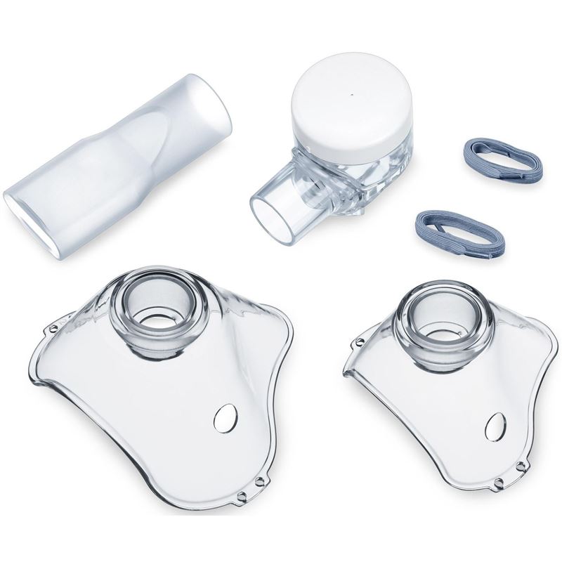 Sada príslušenstva k inhalátoru BEURER IH51 obsahuje:- 1 x rozprašovač s nádobkou na lieky,- 1 x náustok,- 1 x maska pre dospelých,- 1 x maska pre deti.Sadu príslušenstva je možné dezinfikovať.