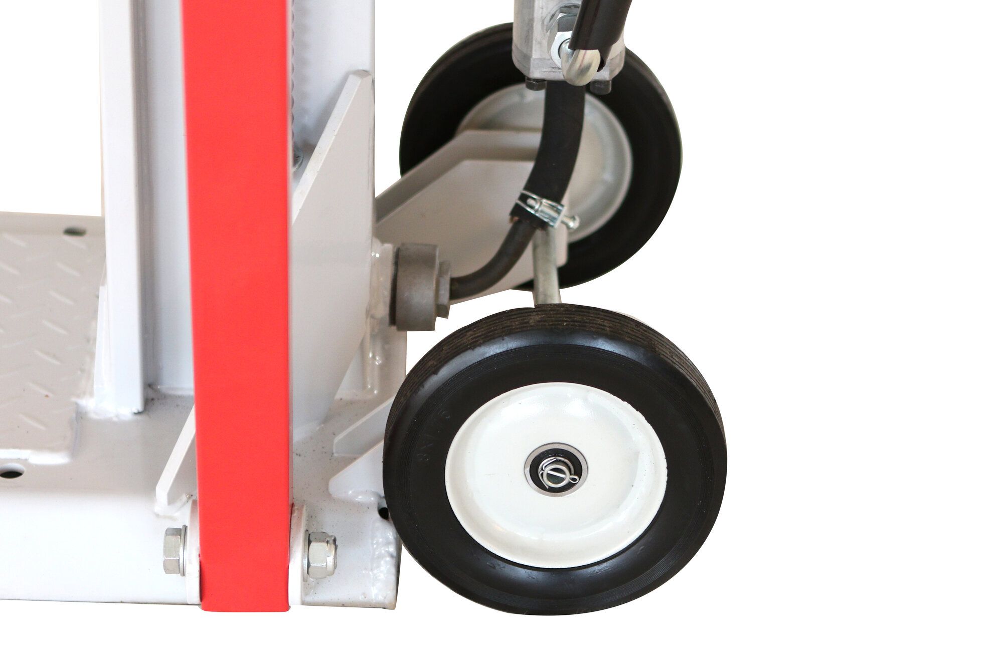 Transportné kolesá, tretie pomocné koleso pri vodiacich rukovätiach, možnosť zníženia piestu a sklopenie bočných opier uľahčuje manipuláciu so strojom a jeho skladovanie.