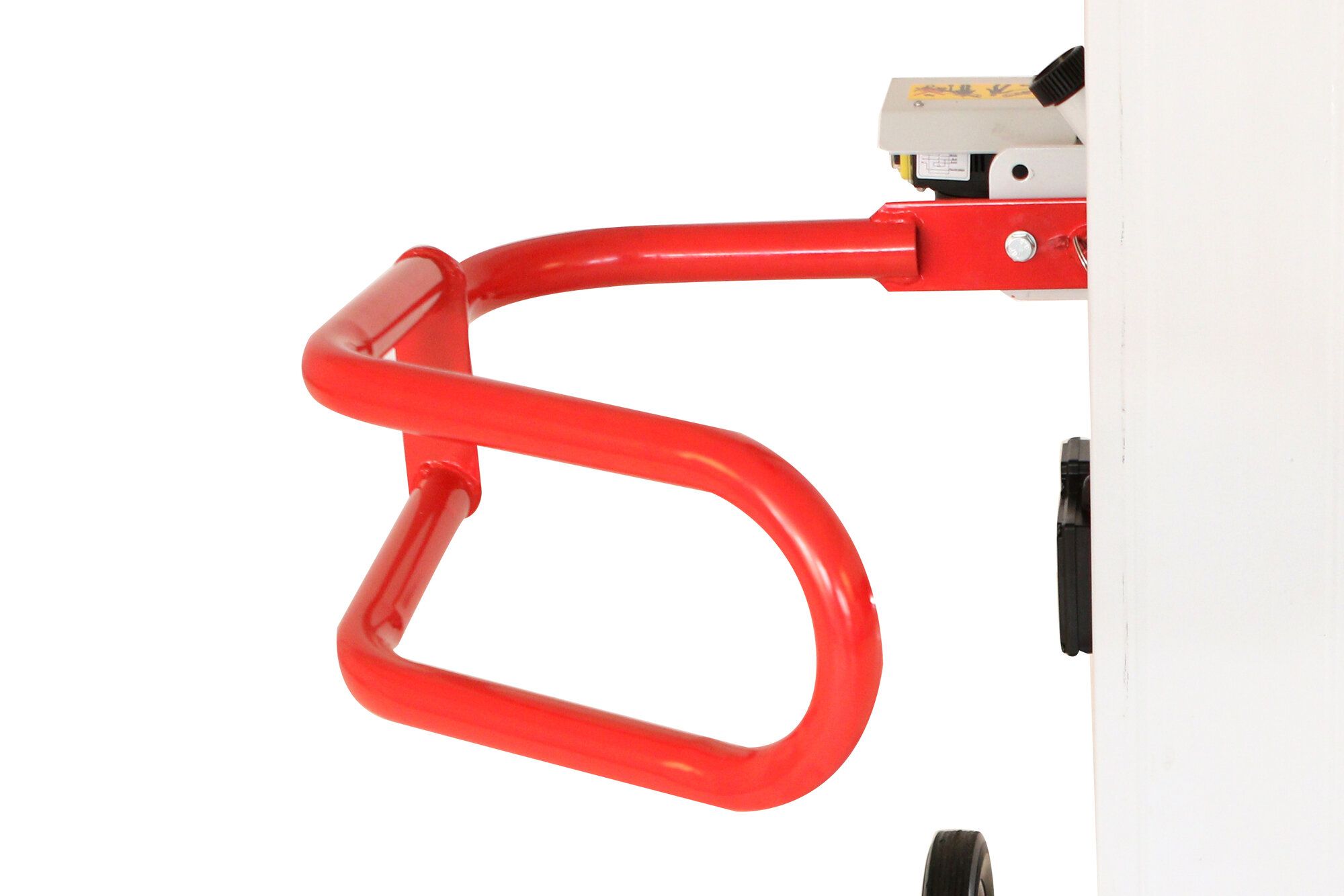 Veľmi ťažké poleno navyše stačí položiť na bočné rameno spojené s piestom štiepačky, ktoré vám pomôže poleno postaviť.