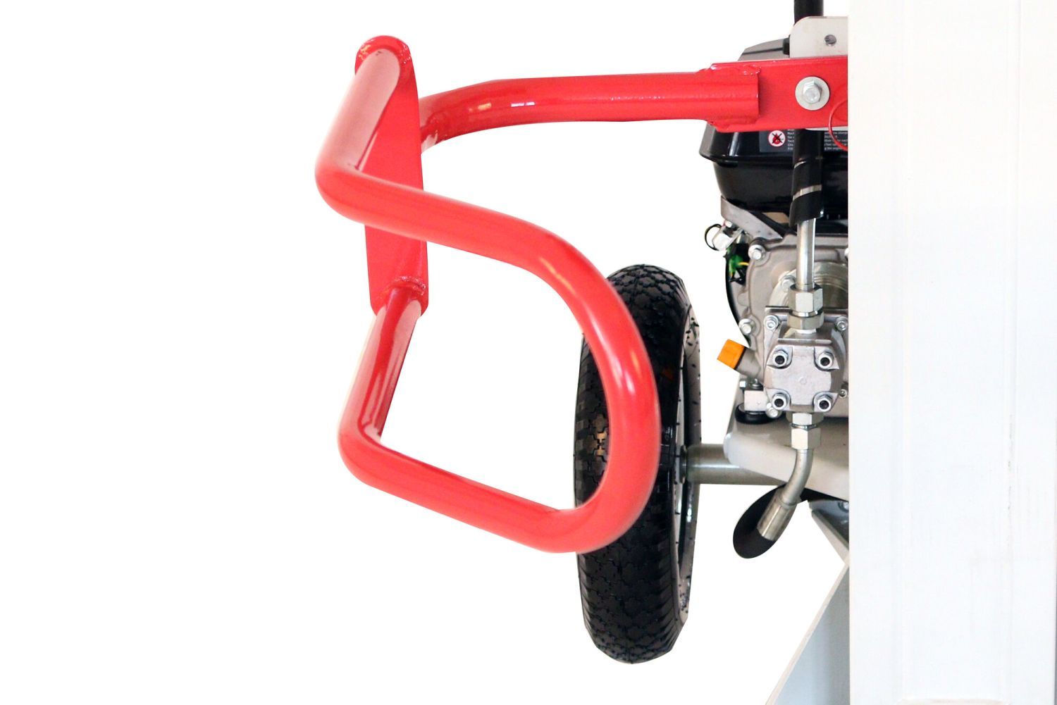 ochranné rameno a transparentné koleso pri vodiacich rukovätiach pre ľahký prevoz štiepačky. Ľavá ovládacia páka je vybavená zariadením pre zaistenie stability polena. Do štiepačky je zabudovaný systém