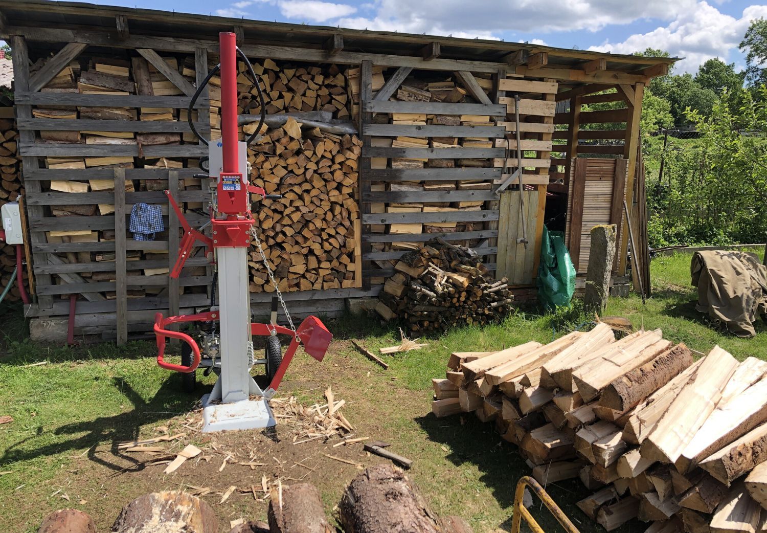 ťažké poleno naviac stačí položiť na bočné rameno spojené s piestom štiepačky, ktoré Vám pomôže poleno postaviť. So štiepačkou Vari nieste viazaný na prívodový kábel a tým pádom môžete