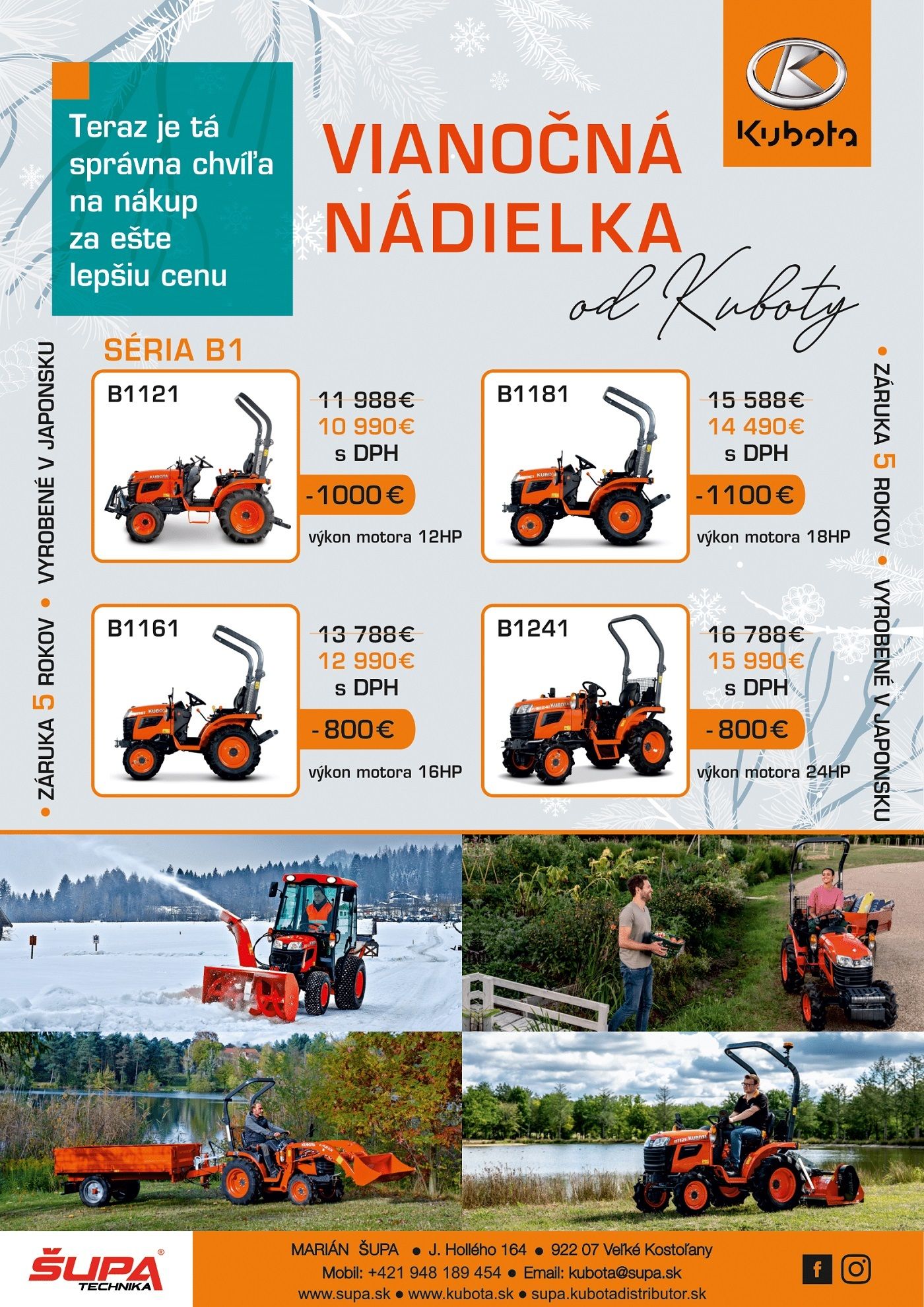 ktorý spoľahlivo zabezpečuje elektrickú energiu aj v chladných zimných dňoch. Kubota B1121 s motorom Kubota Z482 o výkone 12 HP predstavuje malý, no výkonný traktor B1 pre Vaše práce v záhrade.