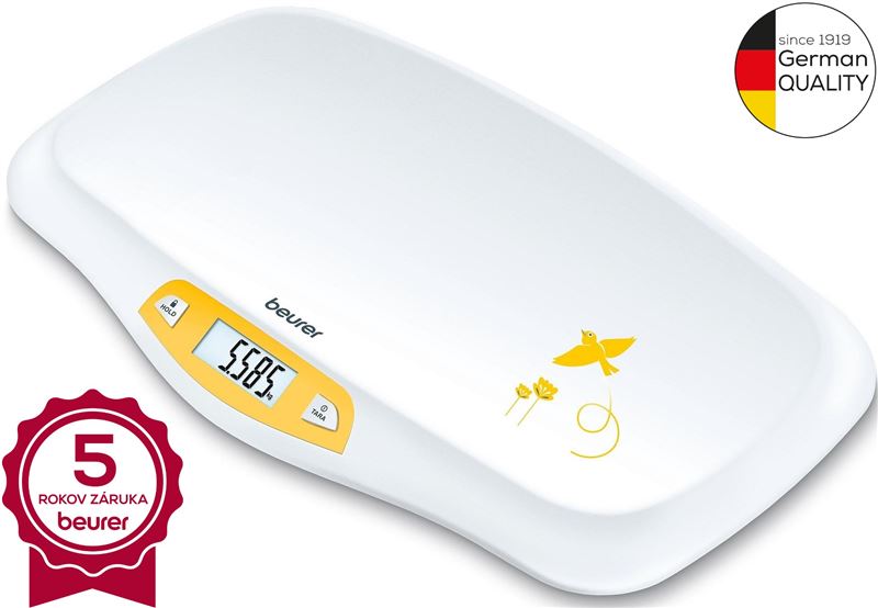 Dojčenská váha Beurer BY80 je praktickým pomocníkom pre kontrolu váhy bábätiek. Úžasná je jej kapacita 20 kg! Je vybavená šikovnými funkciami, ktoré vám uľahčia sledovanie prírastkov na váhe dieťatka. Medzi ne patrí funkcia TARA umožňujúca odpočítať veci váženej súčasne s bábätkom, ako napríklad uterák, plienku či oblečenie. Mamičky aktívnych detí potom ocenia aj funkciu HOLD, vďaka ktorej váha spoľahlivo zaznamená hmotnosť aj keď je dieťa práve nepokojné. Výsledok váženia je zobrazovaný na prehľadnom a dobre čitateľnom LCD displeji, váha potom ponúka pamäť na jedno meranie. Klenutý povrch zaručuje bezpečné použitie.Charakteristika a technické údaje:   detská váha funkcia TARA funkcia HOLD pre zaznamenanie hodnoty nepokojných detí klenutý povrch jednoducho sa čistí 1 pamäť čitateľný LCD displej, číslice 23 mm rozmer 550 x 310 x 53 mm maximálne zaťaženie 20 kg rozlíšenie 5 g batérie AA (v balení)  Kolekcia starostlivosti o dieťa nemeckého špecialistu Beurer obsahuje starostlivo prispôsobenú škálu produktov, ktoré spĺňajú všetky potreby detí a rodičov: od detských monitorov, klinických teplomerov, inhalátorov, detských váh a odsávačiek mlieka až po ohrievače a sterilizátory fliaš. Starostlivosť o dieťa Beurerom, to je len to najlepšie pre našich malých!