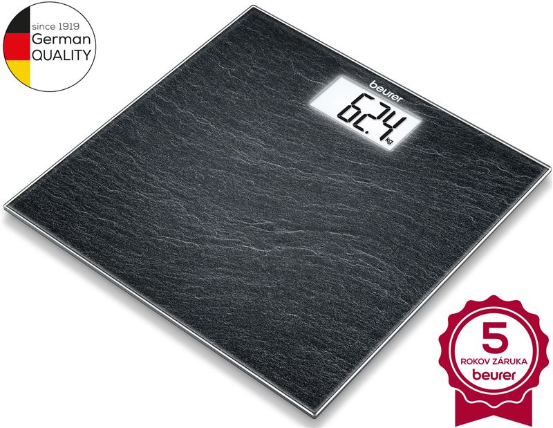 Unikátna osobná digitálna váha Beurer GS 203 od nemeckej značky Beurer Vám prináša krásny dizajn, štýlový tvar, obrovský displej a úžasné parametre. S vážiacou plochou z bezpečnostného skla sa nemusíte báť rozbitia. Kapacita až 150 kg a presnosť 100 g potešia všetkých, ktorý chcú mať svoju váhu pod kontrolou.Charakteristika a technické údaje:Pôsobivé, biele LCD osvetlenieS mimoriadne veľkým LCD displejomPlochý dizajn: výška len 19 mmVeľkosť číslice: 40 mmMeracia plošina bezpečnostného sklaZmena na kg / lb / stKapacita: 150 kg / presnosť: 100 gIndikácia preťaženiaAutomatické zapnutie a vypnutieObsahuje 2 x 3 V batérie CR 2032Rozmery produktu 30 x 30 x 1,9 cmKu komfortnému používaniu určite prispievajú aj veľké číslice s veľkosťou až 4 cm a podsvietený displej pre lepšiu viditeľnosť. Automatické vypnutie je u váh Beurer samozrejmosťou.