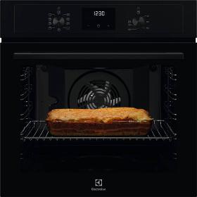 Multifunkčná teplovzdušná rúra, čierno-biely grafický displej, trojité sklo dverí, ovládanie push gombíkmi, 8 základných funkcií + Auto programy, Konvekčný ohrev, Horúci vzduch, Gril, Turbo gril, Maxi pečenie, Pizza, Chlieb, Kysnutie, Hydroclean – jednoduché čistenie vnútorného priestoru a skla dverí, Cook3, prevedenie: nerez, čierne sklo dverí, príslušenstvo: teleskopické výsuvy, 1x rošt, 2x plech na pečenie