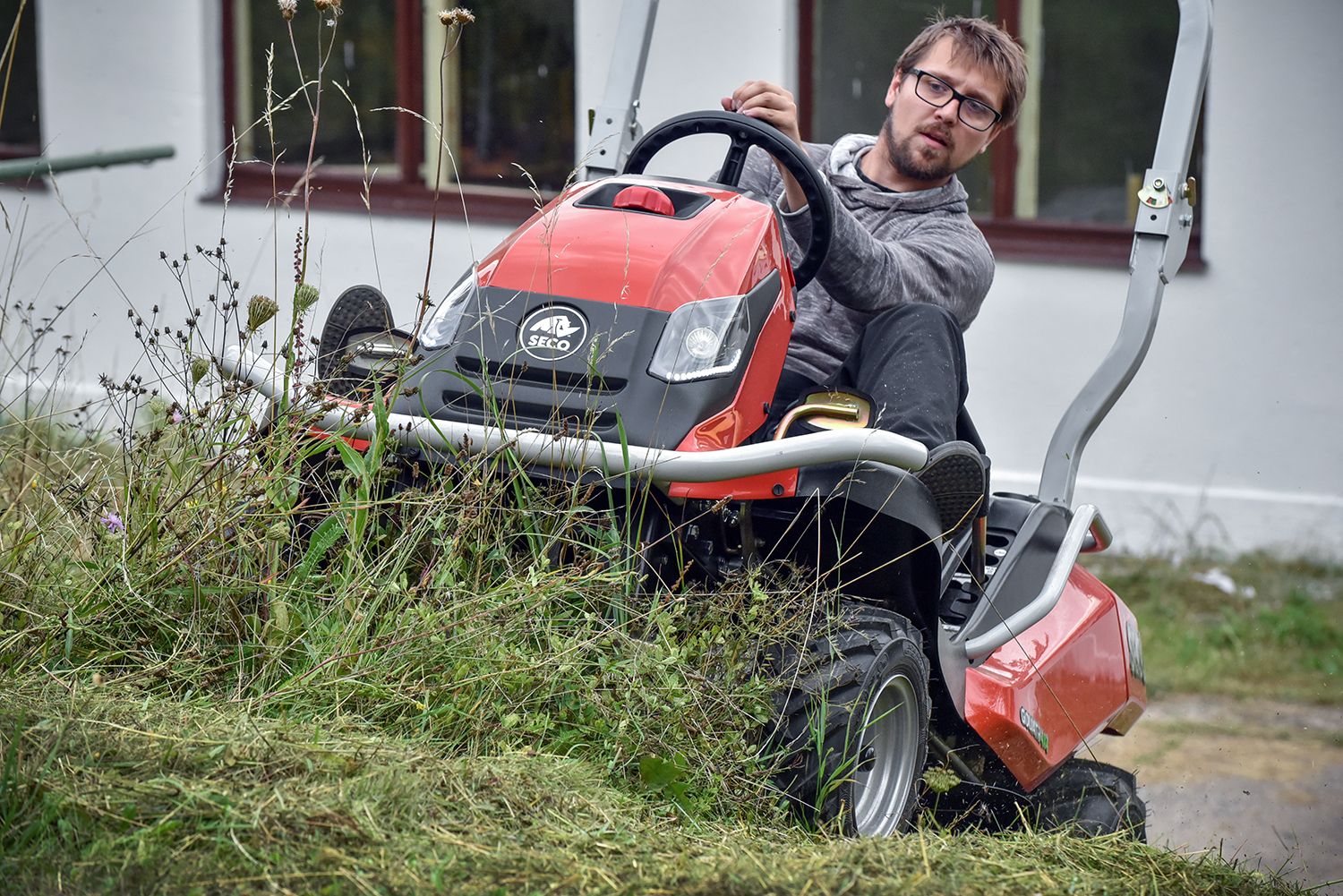 vysekávanie trávy v lesníckych škôlkach. Možno k nemu