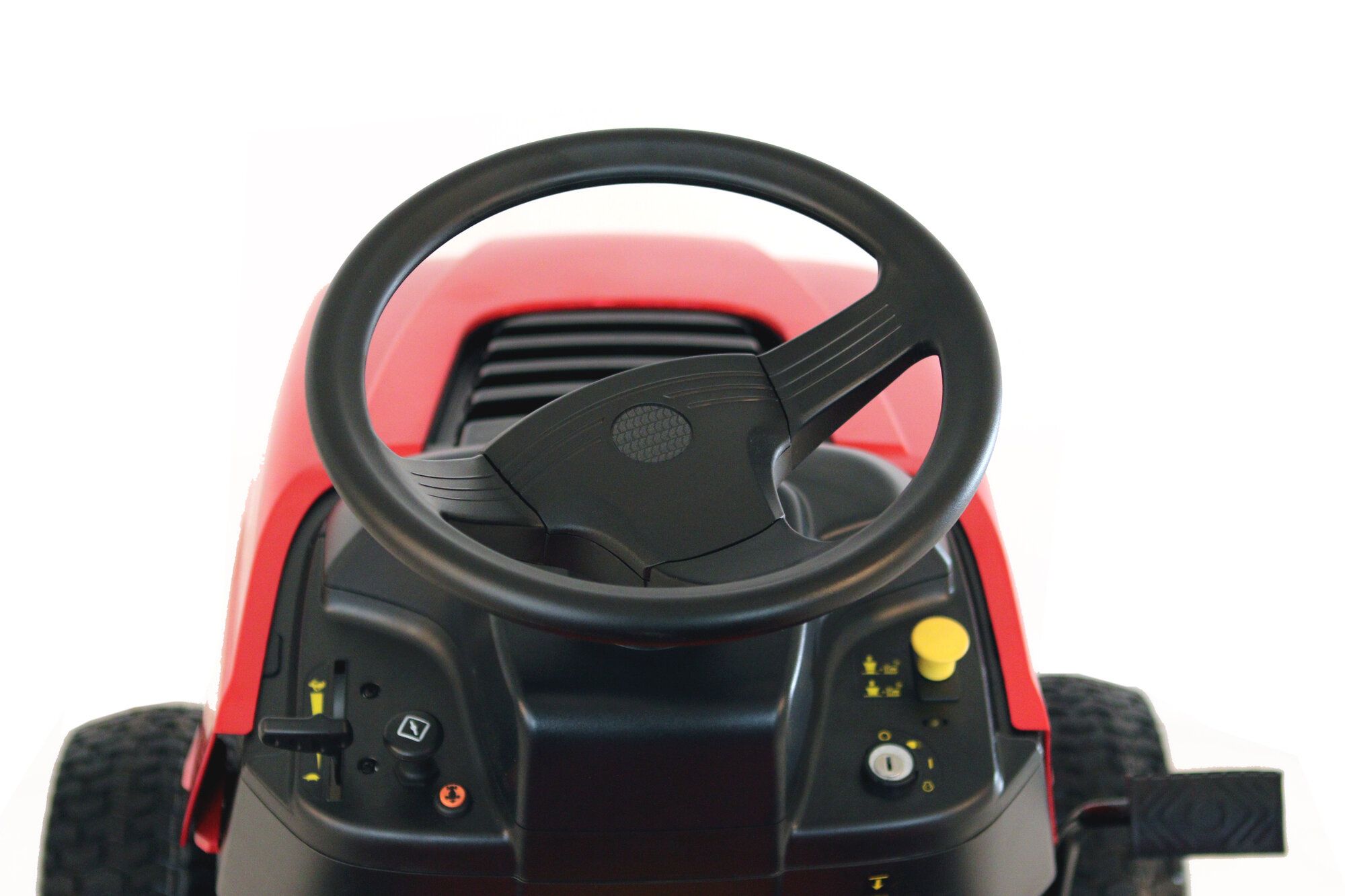 K traktoru je možné dokúpiť deflektor na kosenie trávy bez zberného koša, ťažný záves a sklopný vozík.